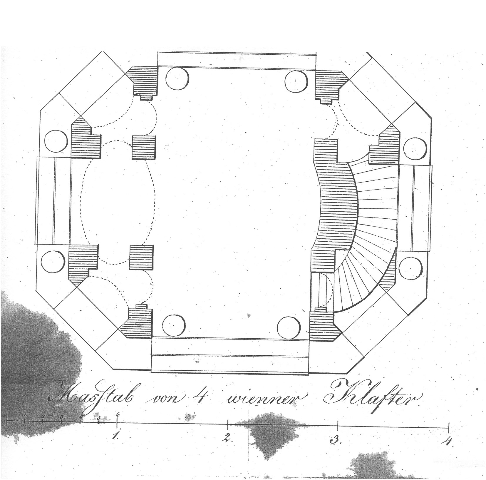 At the turn of the eighteenth and nineteenth century, Moravia was gripped by a fashion for “English” landscape parks that had arrived into the heartland of the Habsburg Empire from France and the German lands. Within the spirit of Rousseauian philosophy, the formal parterres were being replaced by seemingly randomly planted shrubs and clumps of trees, glades, water features, winding paths, and frequently also by romantic follies. Initially, such modifications were limited to the enclosed château grounds, but they gradually began to spread into the surrounding landscape. The landscape park surrounding the châteaus of Lednice and Valtice, laid out in the early decades of the nineteenth century by the princes of Liechtenstein, is a typical example of this phenomenon. Likewise, a pavilion designed by architect Anton Ortner was built in the years 1801–1802 at the crossing of two avenues outside the borders of the Uherčice grounds, in so-called Doubrava near the village of Korolupy. The no-longer extant structure, inspired by a pavilion in Vienna’s Prater park, was a visual landmark of the avenue leading from the château grounds and into the forest. Its placement within the surrounding landscape is reminiscent of minor pieces of architecture linked to the building activities of the Collaltos, such as the Aleje hunting lodge in the vicinity of Brtnice, another of their ancestral seats.