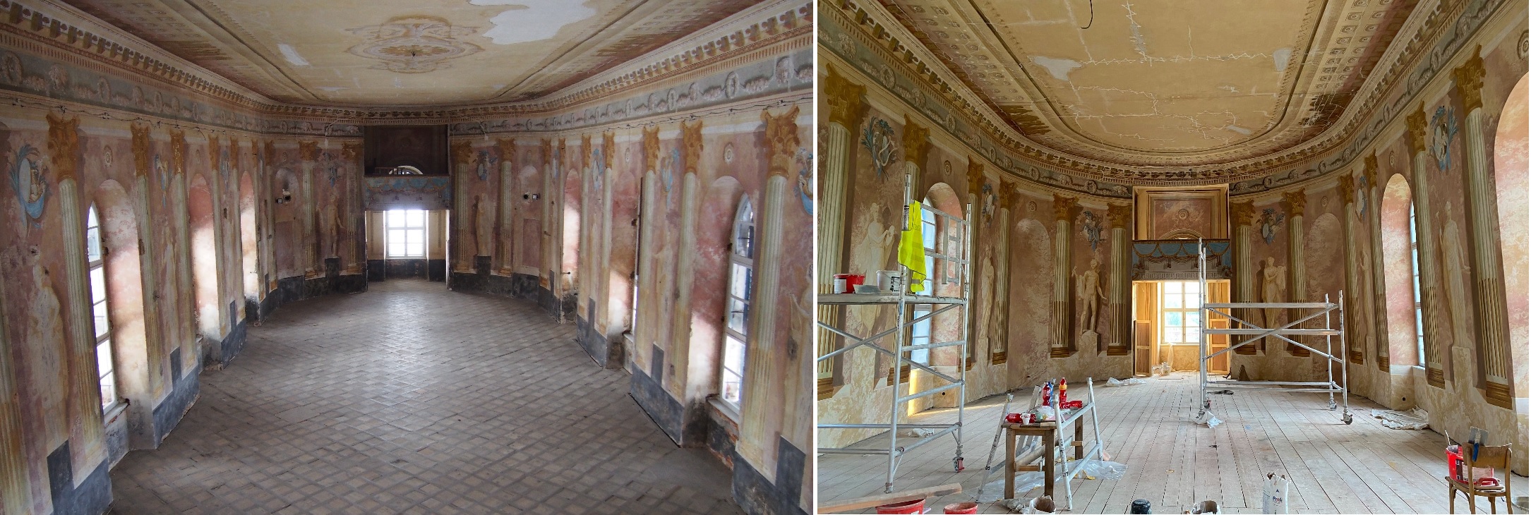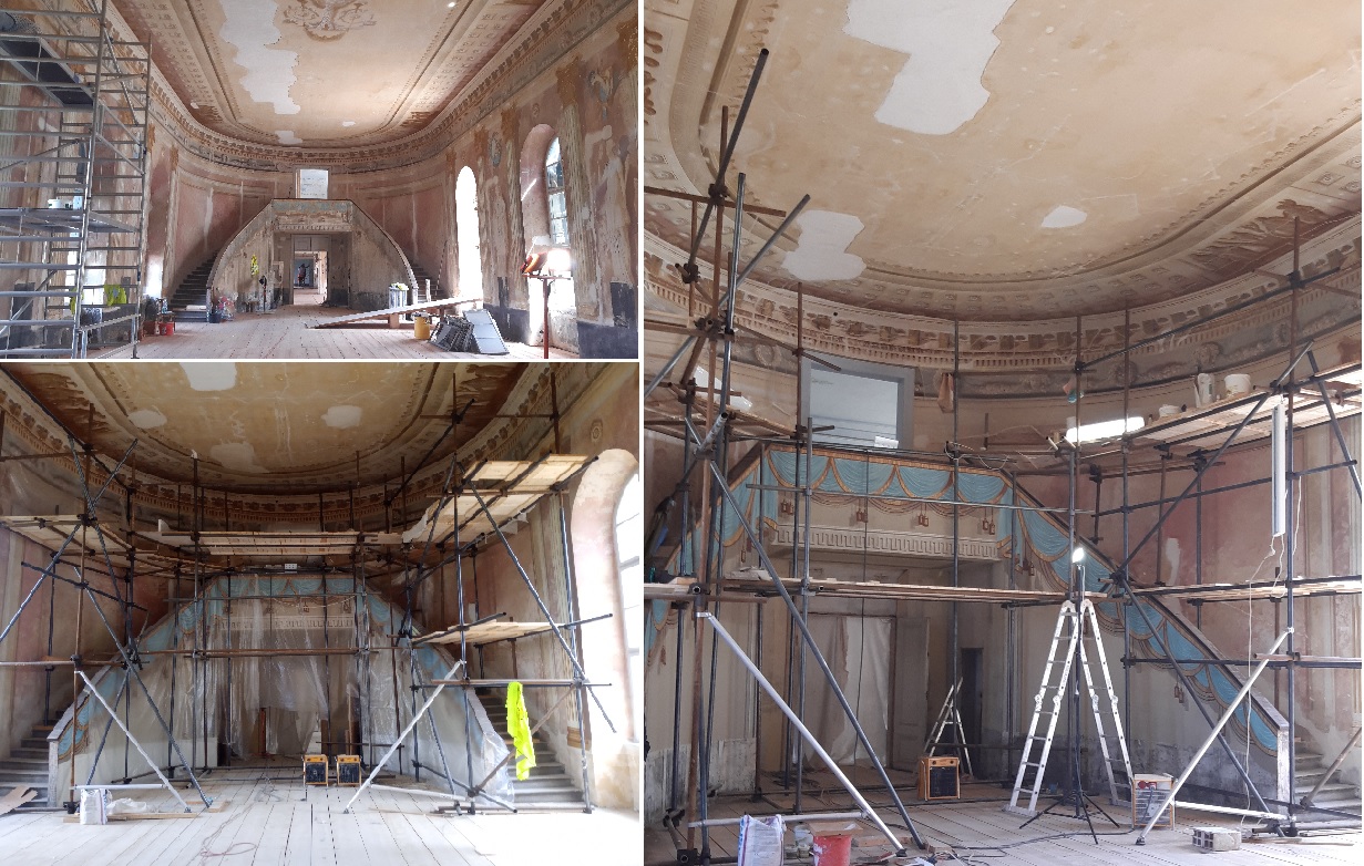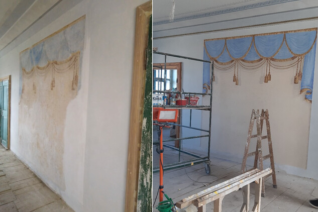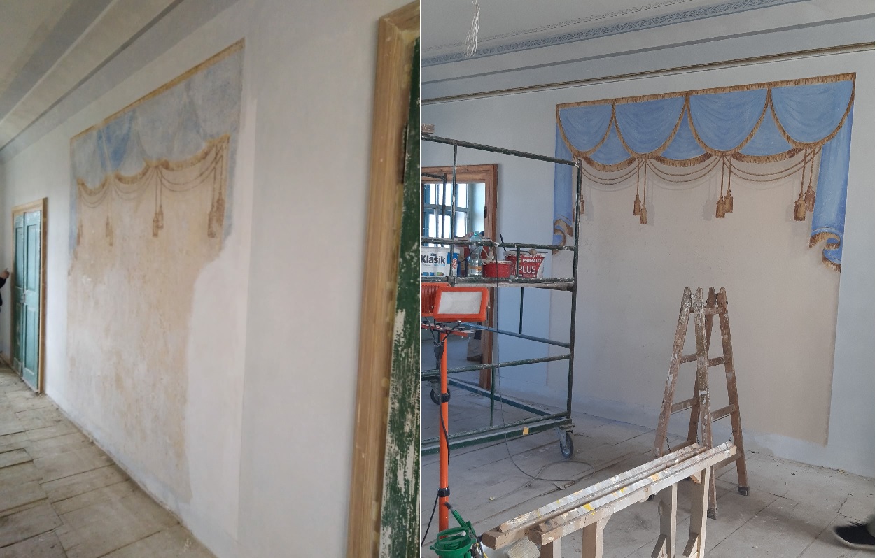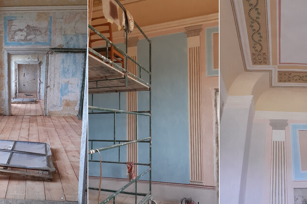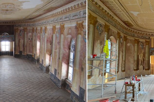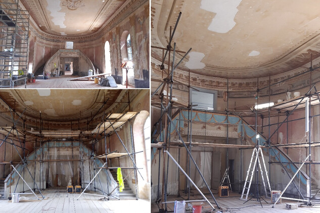 Práce na obnově zámku v Uherčicích jsou v plném proudu. V současné době zde probíhají především restaurátorské práce. Restaurátoři si vzali do parády Banketní sál a přilehlé místnosti, které postupně získávají svou ztracenou krásu.