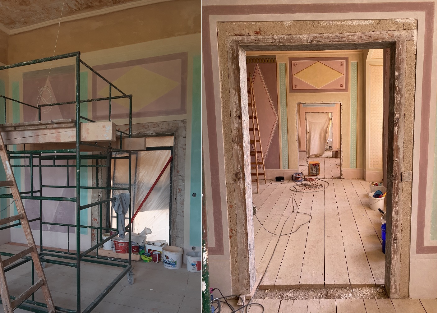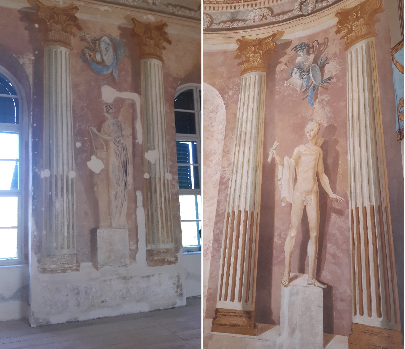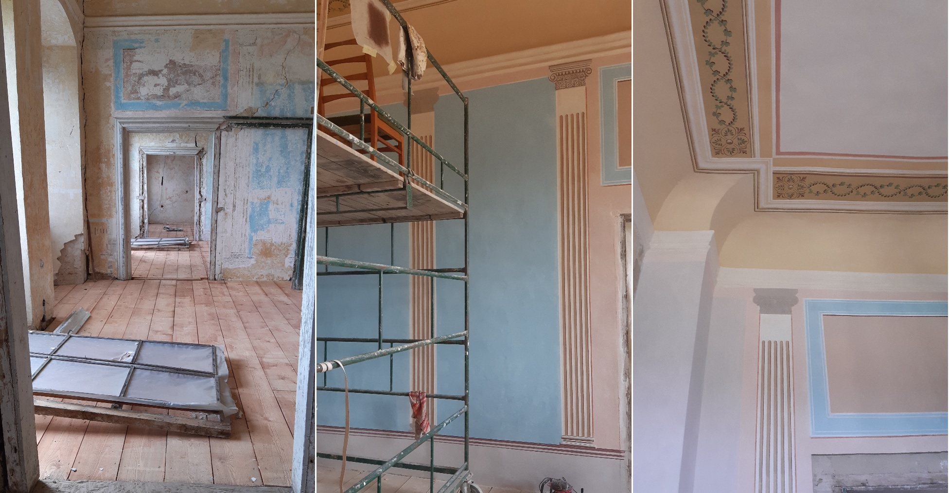 Práce na obnově zámku v Uherčicích jsou v plném proudu. V současné době zde probíhají především restaurátorské práce. Restaurátoři si vzali do parády Banketní sál a přilehlé místnosti, které postupně získávají svou ztracenou krásu.